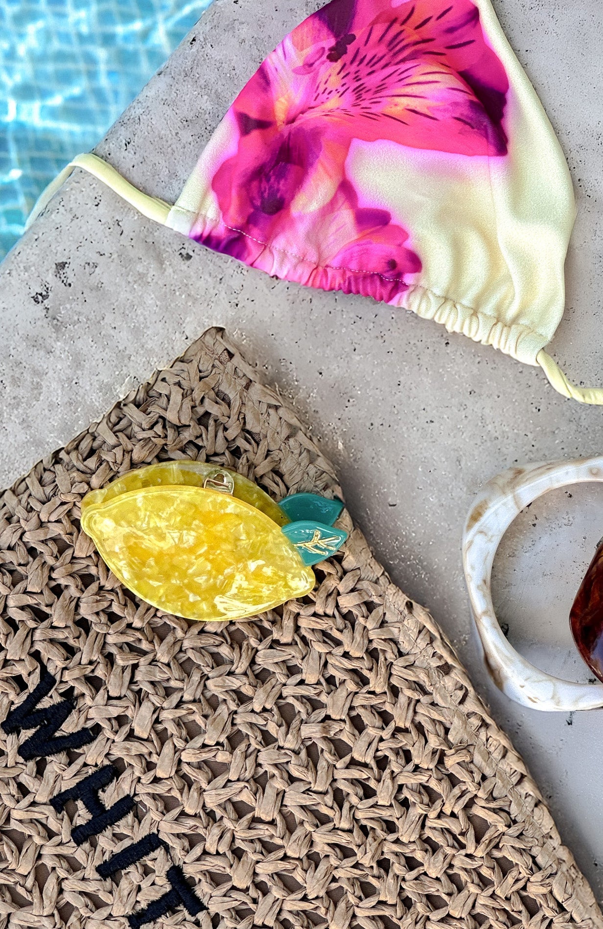 Your new beach essential for those hot days! The Piper Hair Clip Lemon features an inner claw to hold hair firmly, unique design and easy spring closure.