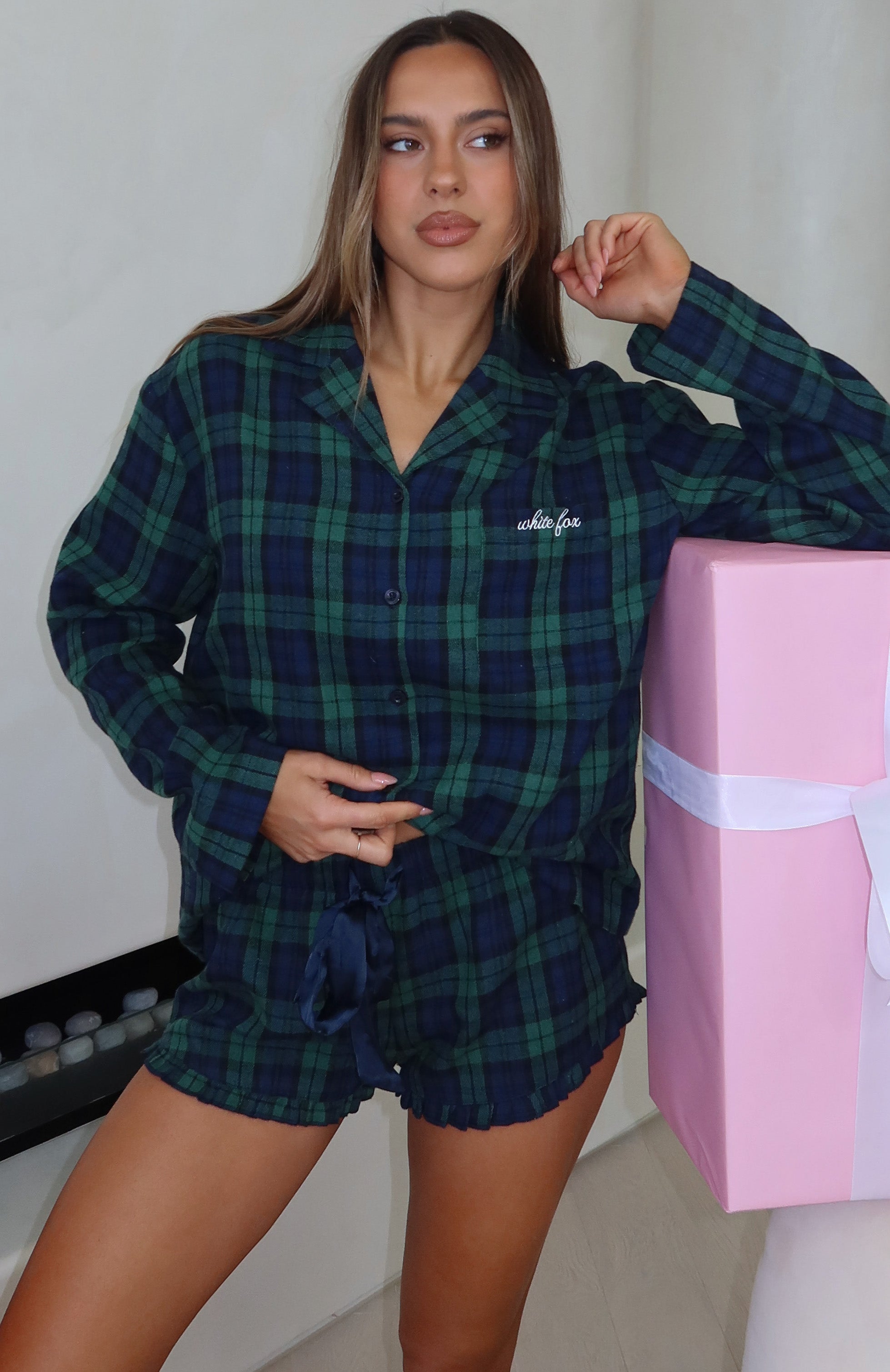 Feel oh so merry in The That Time Of The Year Pyjama Shorts in Green/Navy! Featuring a thick elasticated waistband with drawstring detail and a classic plaid pattern, these lightweight shorts offer a relaxed fit ideal for lounging. Pair them with the matching That Time Of Year Long Sleeve Pyjama Top Green/Navy and wait for Santa.